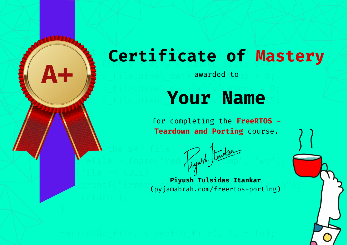 There are several courses online that dive into how to use FreeRTOS. This one take a different approach and dives into the internals of FreeRTOS and how to port it from scratch on a new micro-controller. Learning it this way will ensure that you understand the internals of this RTOS and reason better when using it.